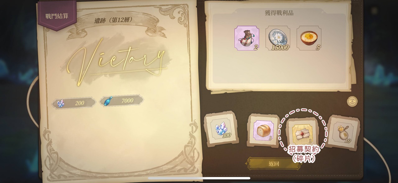 | 遺跡戰鬥勝利6次 | 20 | 50 | 化石結晶 | 100 |