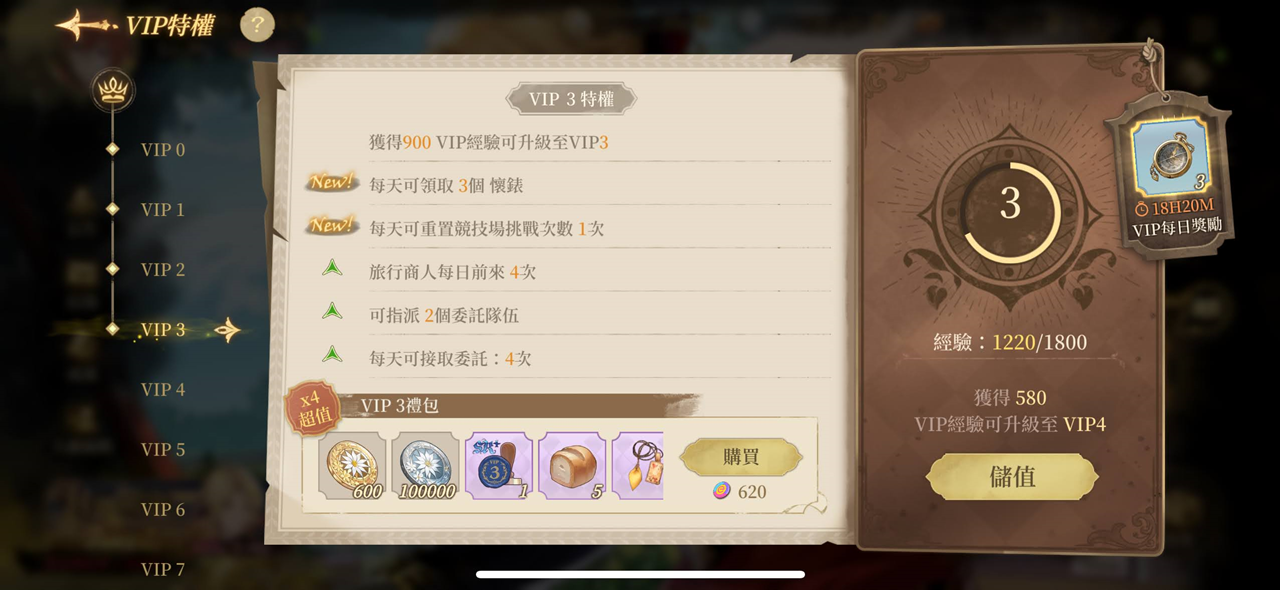 VIP3後每日可領取懷錶購買金幣