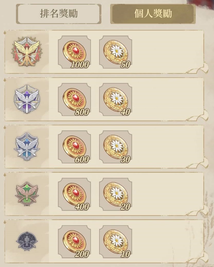 | 獎勵 | 獎勵數量 |