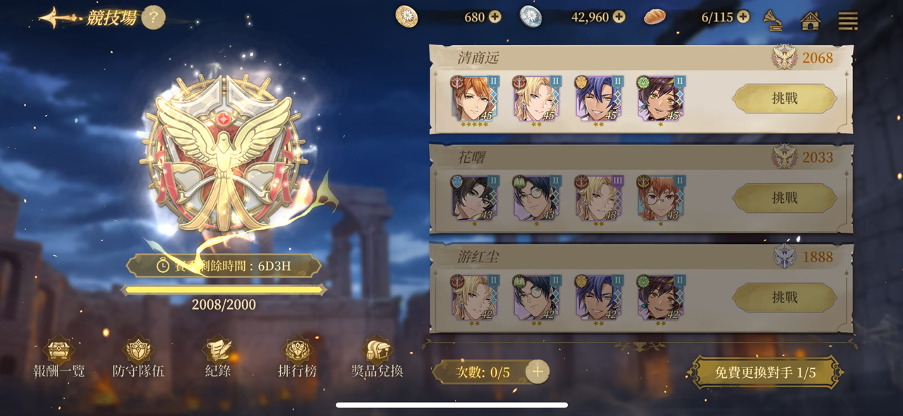 | 4 | 1,800 | 1 | 5 | 2 | 5 | 6 | 5 | 4 | 5 | 2 | 競技場跳過戰鬥 |