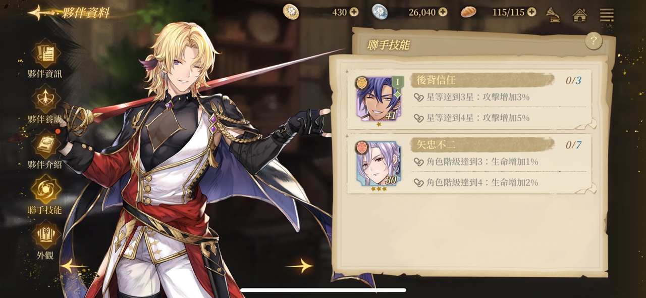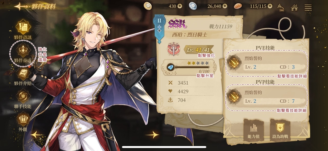 | 強化夥伴1次 | 10 | 25 | 銀幣 | 500 |