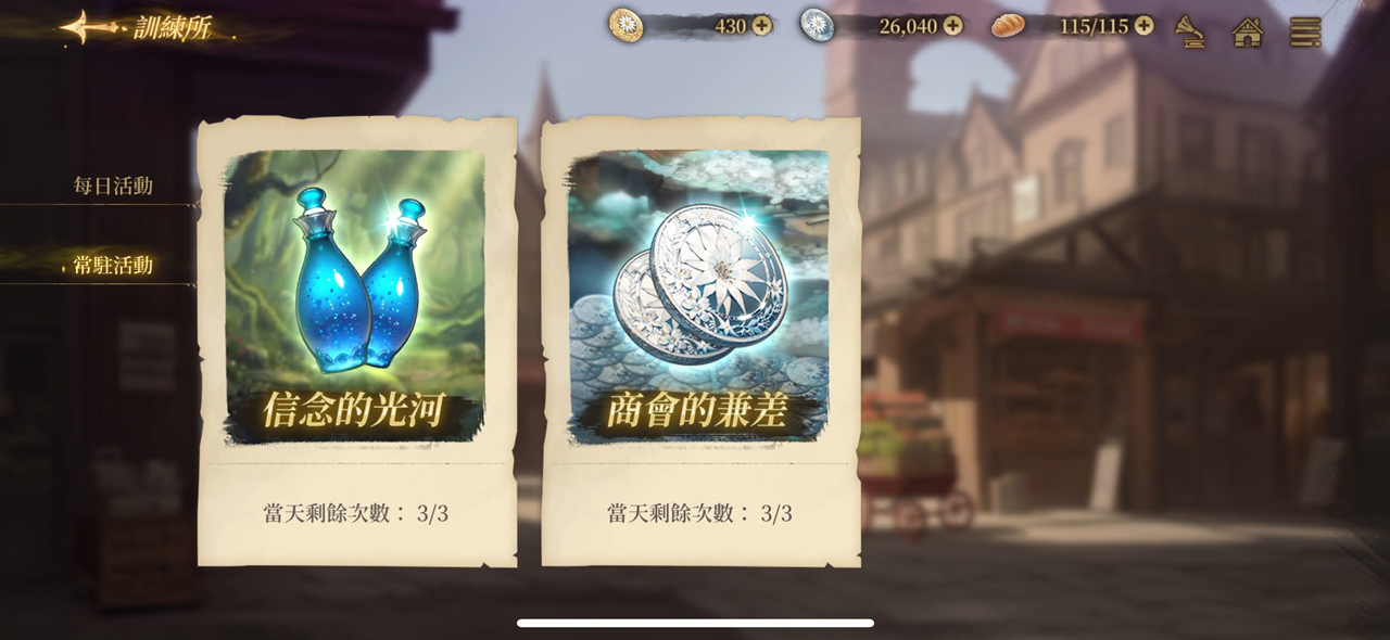 | 完成商會的兼差1次 | 30 | 50 | 銀幣 | 500 |