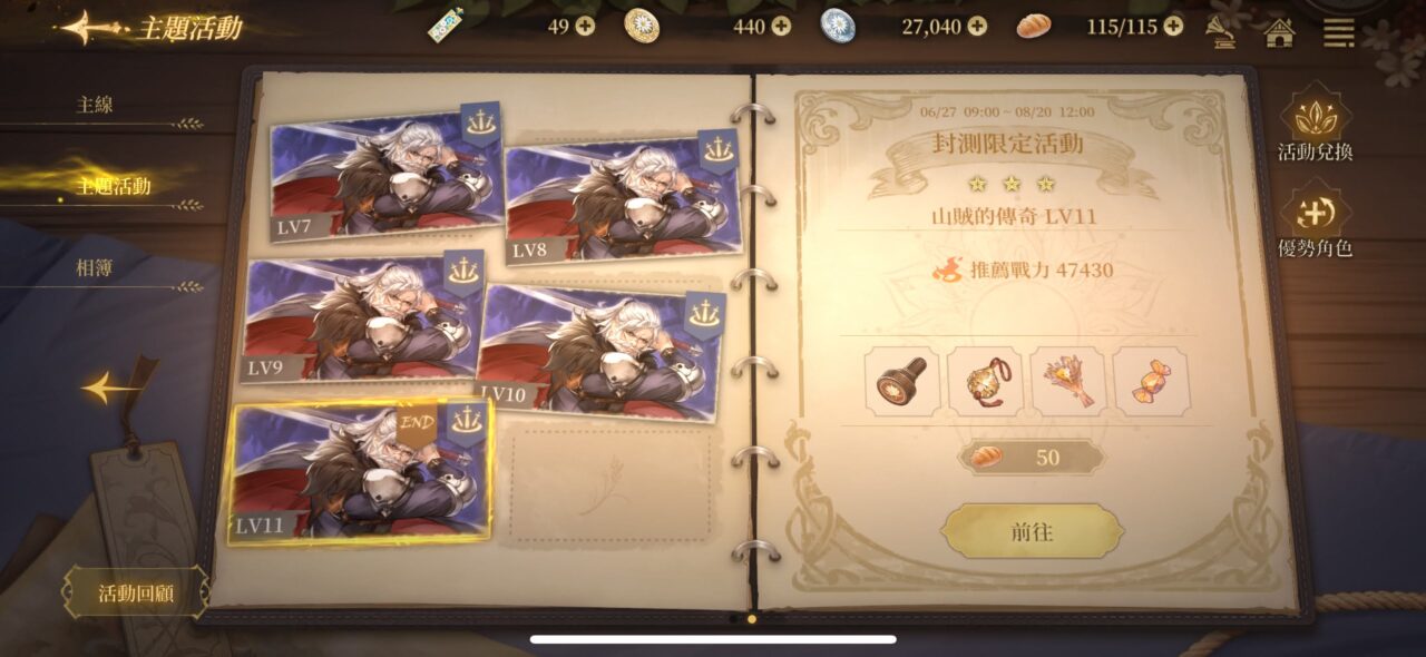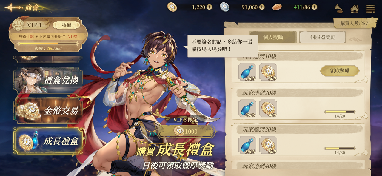 | 完成第三章劇情 | 1,200 | 5 | VIP 1經驗值 |
