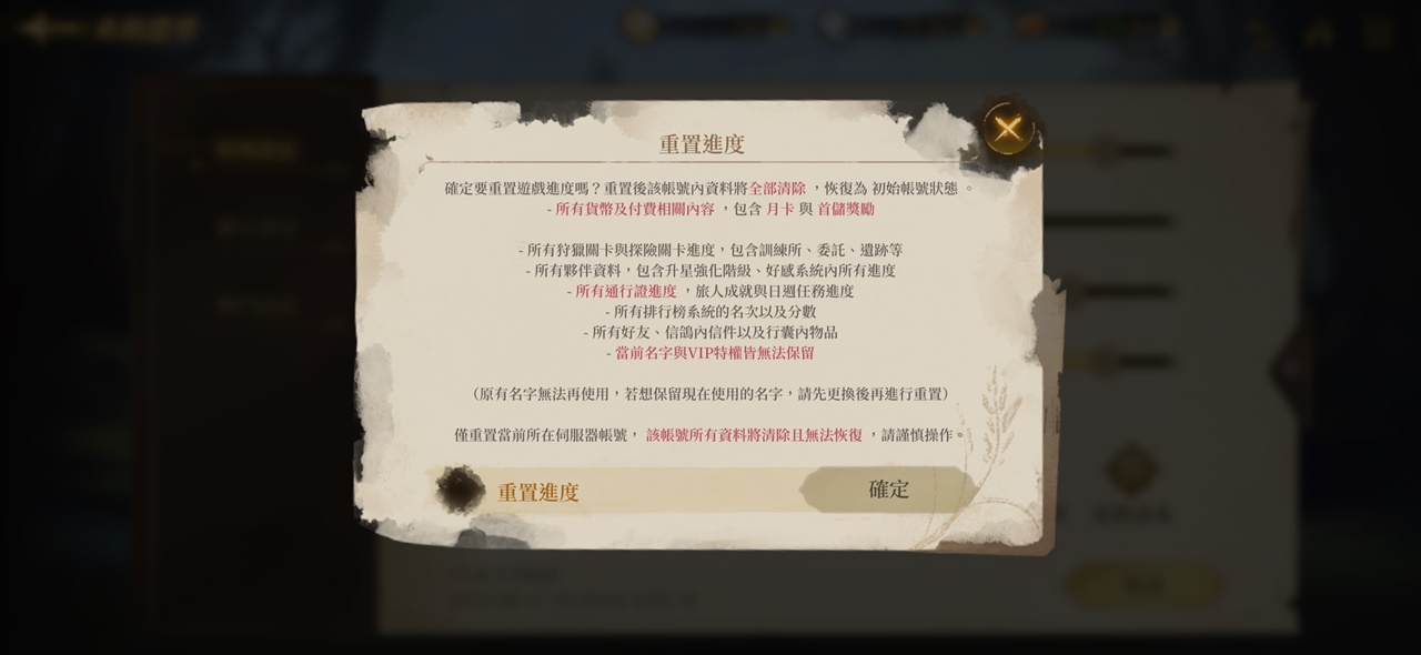 重置遊戲進度