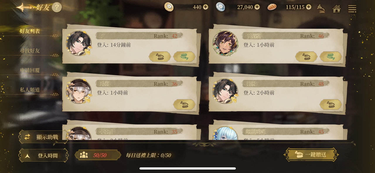 - 好友(送禮)上限:50