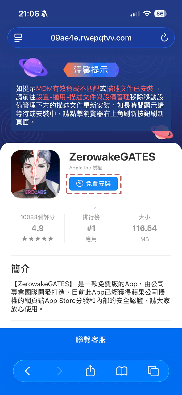 使用此方法安裝零始之門EROLABS版比較簡單但有一定的風險,請自行評估後再決定要不要以此方法安裝。