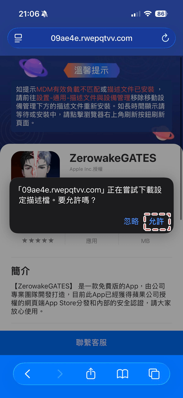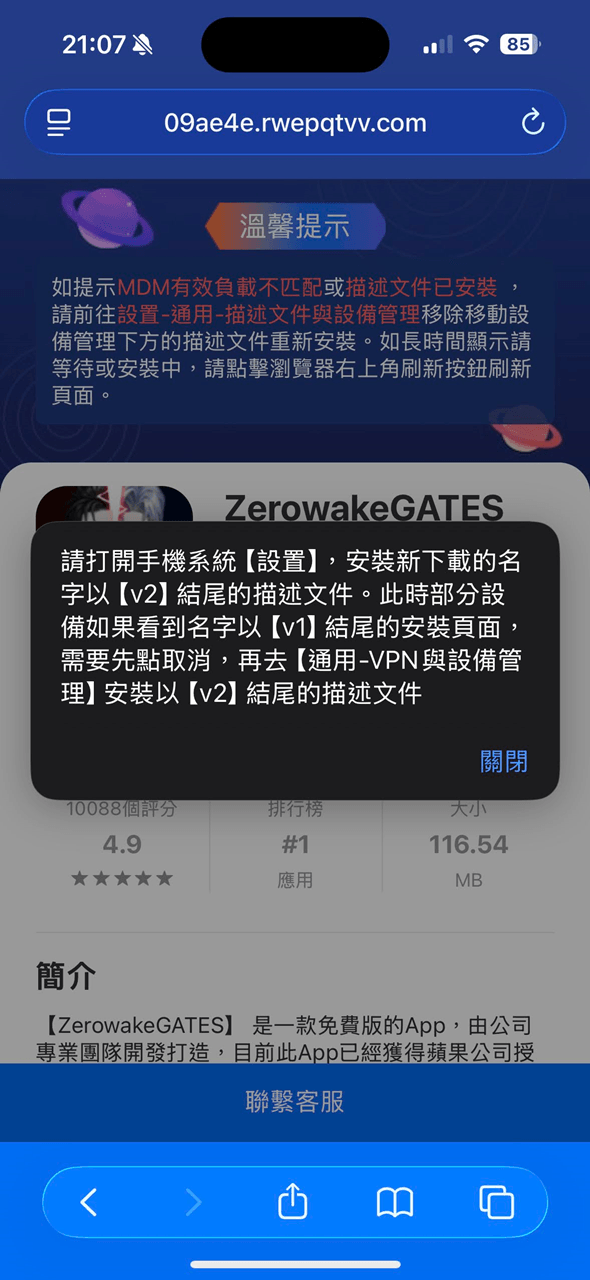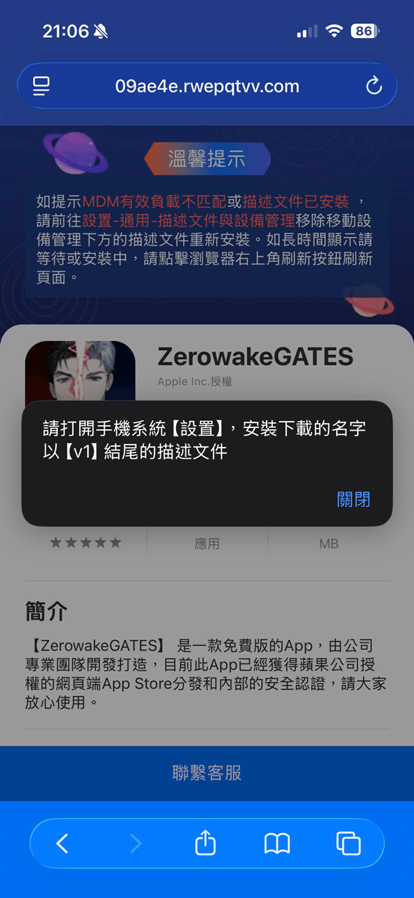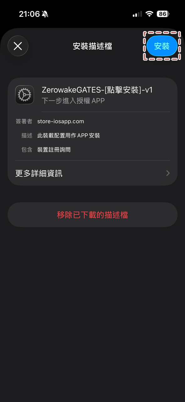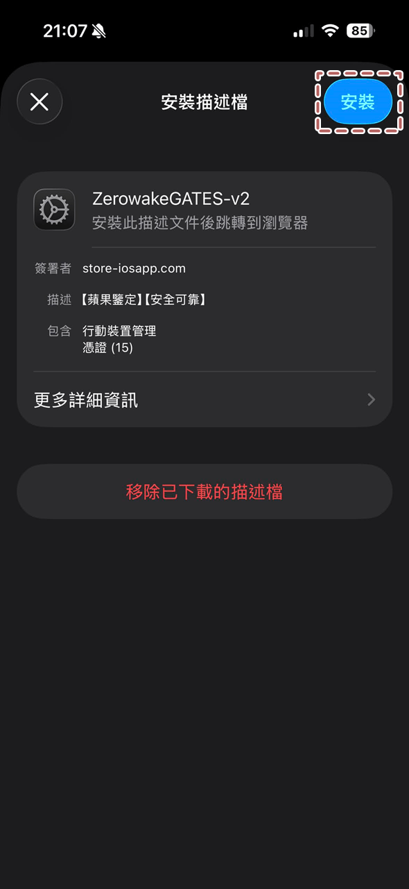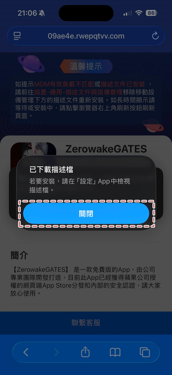 安裝完畢後記得將Safari的下載頁面關閉,不然重新打開有可能造成安裝好的APP消失。