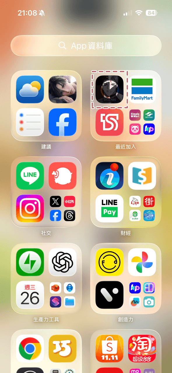 回到主畫面或是資料庫就可以看到APP正在安裝了